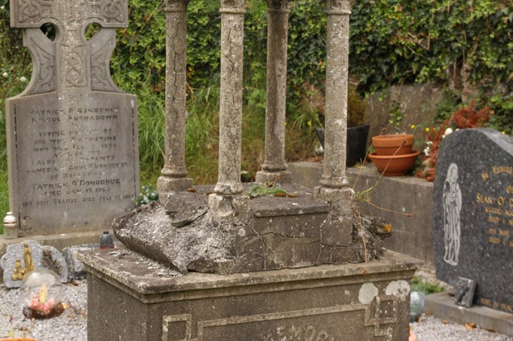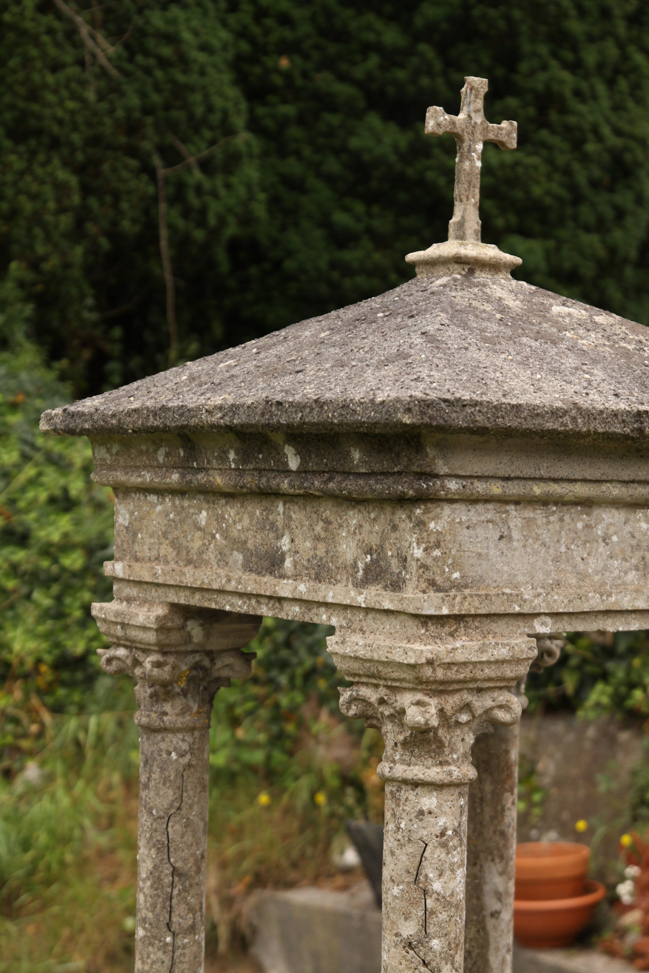 Raised Lettering On Face Of Monument. With Cross on Top of Sculpture.