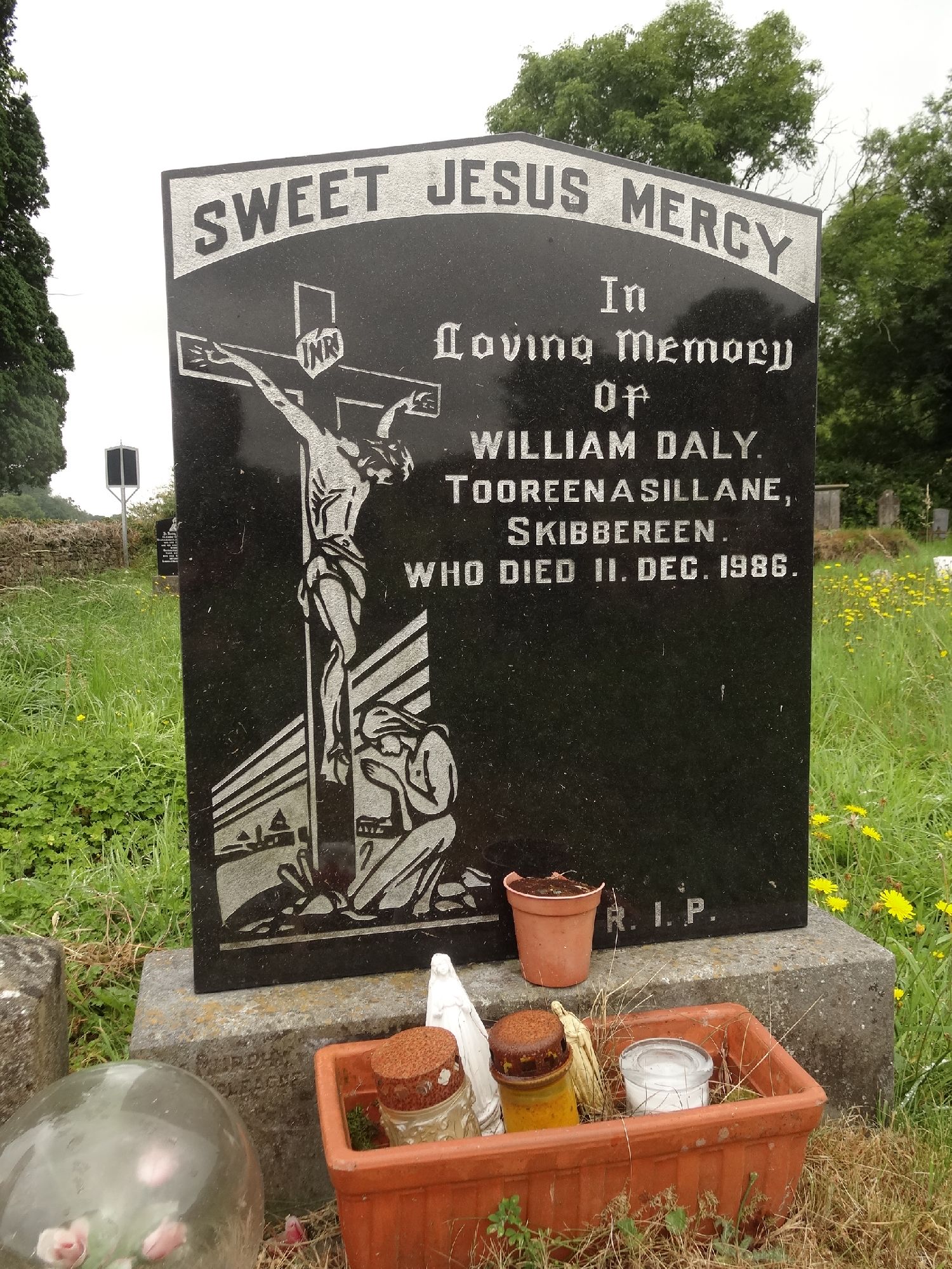 Picture Dipicting Christ Nailed To A Cross On Face Of Headstone.