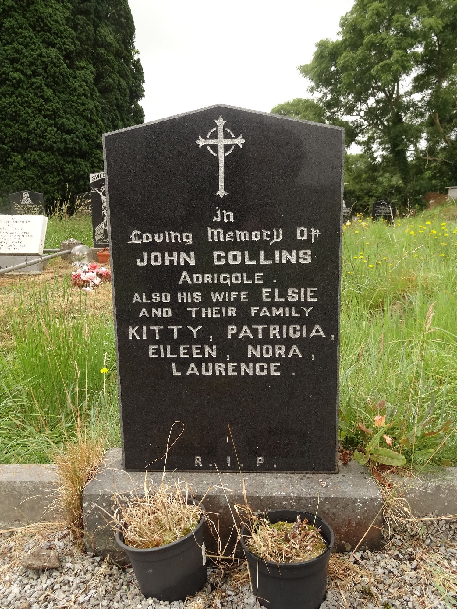 INLOVING MEMORY OFJOHN COLLINSADRIGOLEALSO HIS WIFE ELSIEAND THEIR FAMILYKITTY, PATRICIA,EILEEN, NORA,LAURENCE