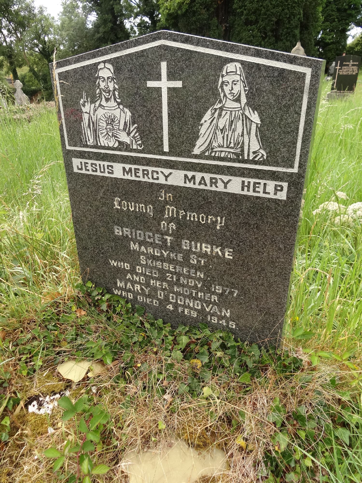 Headstone with . Jesus & Mary etched on top section