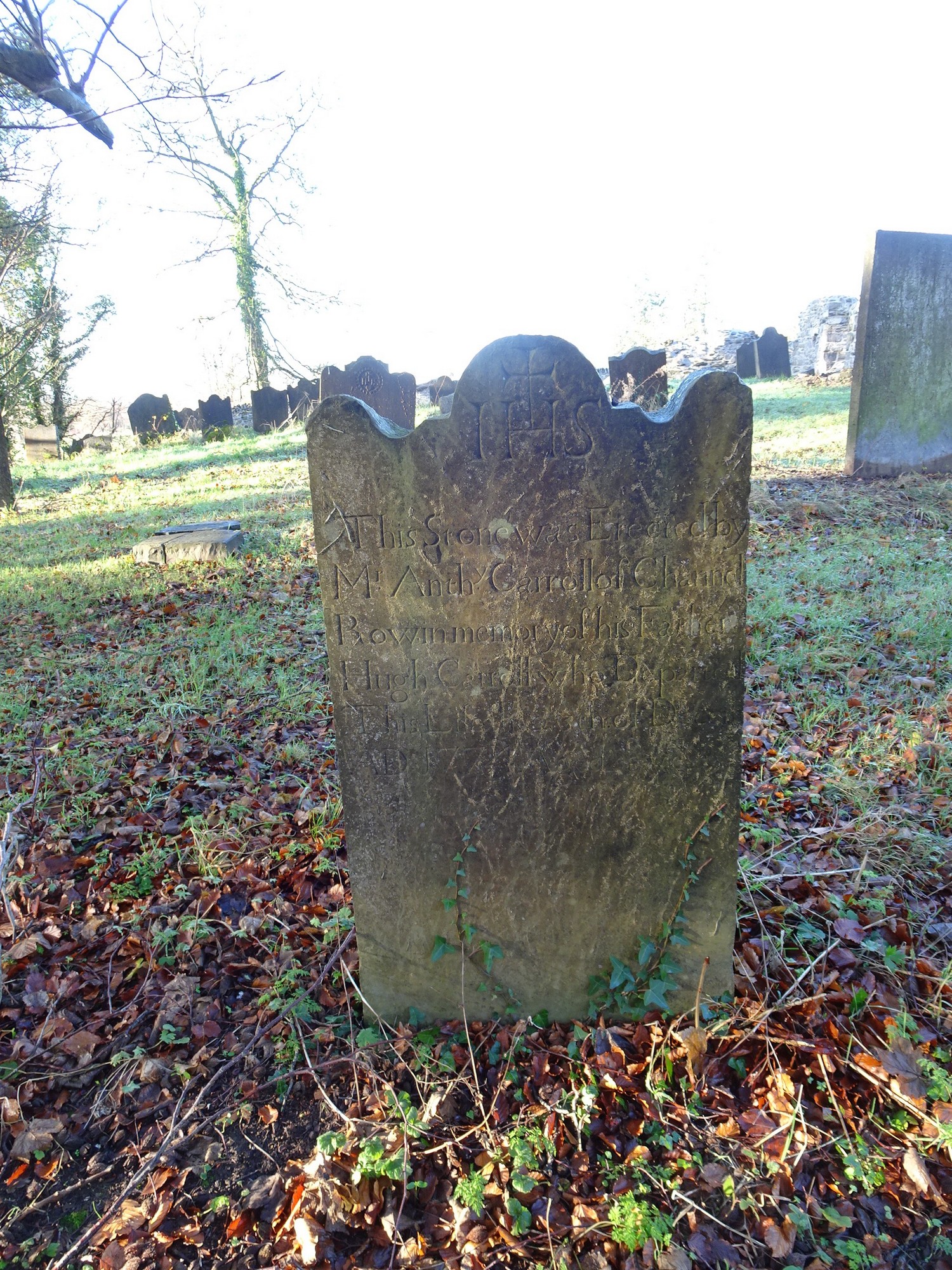 This stone was erected by / Mr Anthy Carroll of Channel / Row in memory of his father / Hugh Carroll who departed / this life the 23th Decemr / AD 1774 aged 58 years / Requiescat in pace
