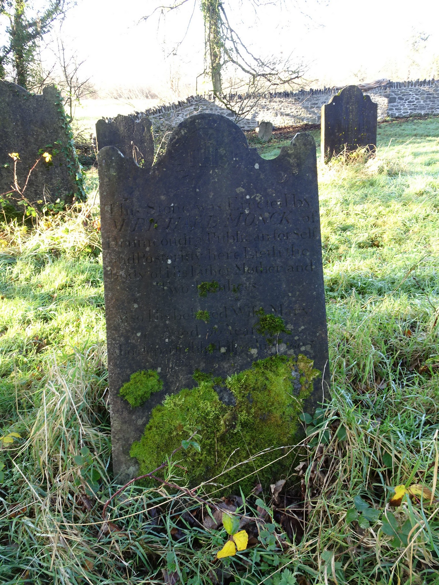 This stone was erected by / Mr Richard Monck of / Drumcondra Publican for self / and posterity here lieth the / body of his father mother and / two brothers / also his beloved wife Mary / aged 50 years / who departed life 3 July 1805