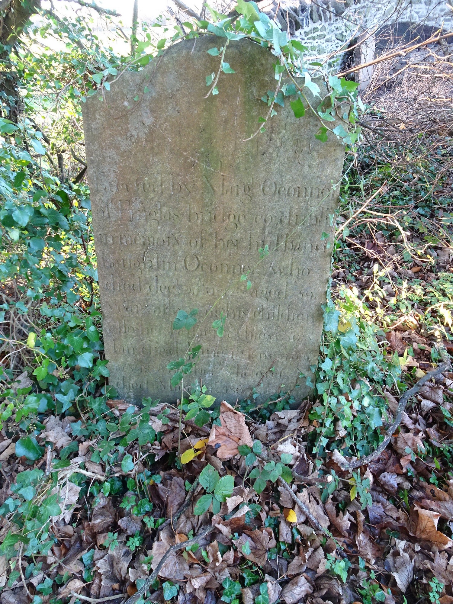 Erected by Margt Oconnor / of Finglas bridge co Dublin / in memory of her husband / Laughlin Oconnor who / died Dec 21 1814 aged 52 / years Also 2 of his children aslo her father Milis Now / lan died June 1806 aged / 50 yrs also her mother Margret / died March 1 1804 aged 60