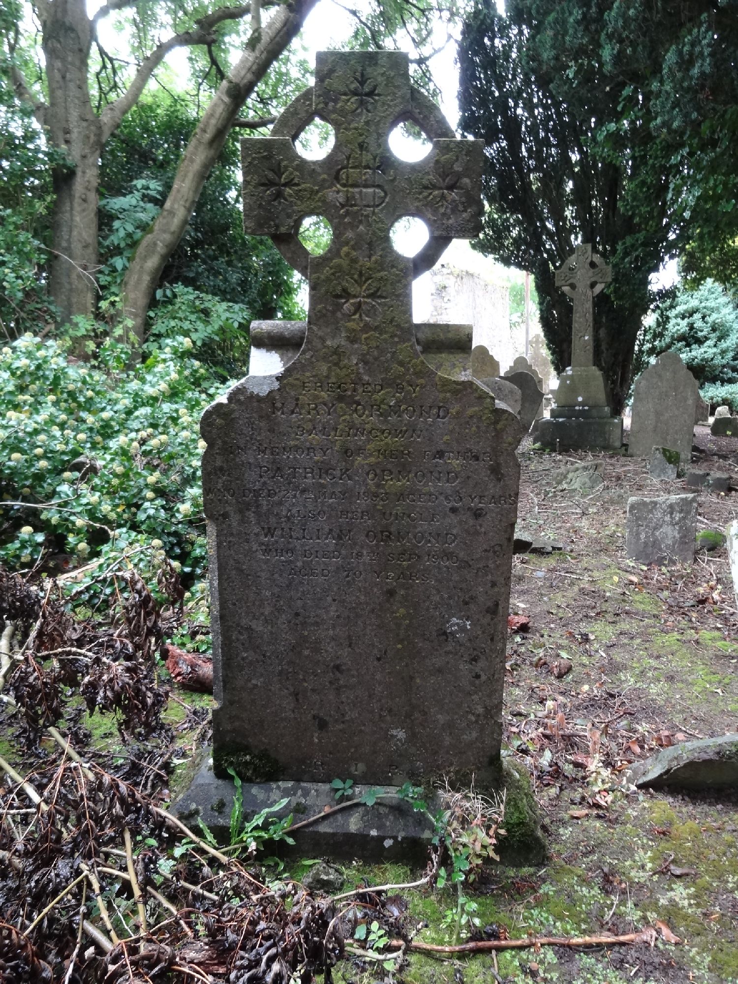Erected by Mary Ormond, Ballingown in memory of her fatherPatrick Ormond who died 27th May 1893 aged 60 yearsAlso her uncle William Ormond who died 18th September 1900 aged 70 years