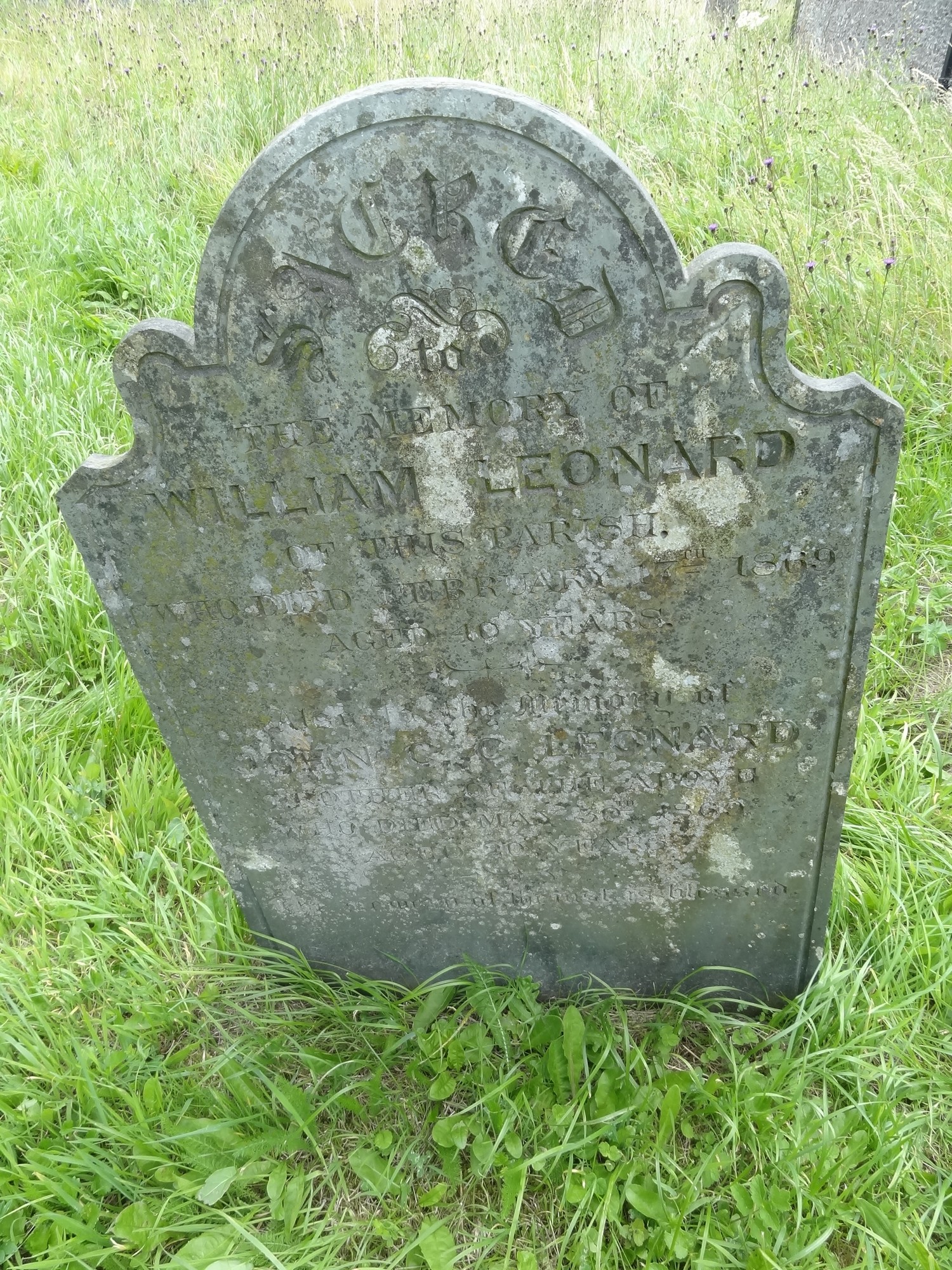Sacredtothe memory ofWilliam Leonardof this parish,who died February 17th 1869aged 40 years.Also of the memory ofJohn ?? Leonard,brother of the abovewho died May 30th 1869aged 20 years.