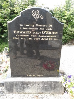 In Loving Memory OfA Dear Brother And UncleEDWARD (NED) O'BRIENCurrabaha West, KilmacthomasDied 14th Jan. 2000 Aged 88 Yrs.