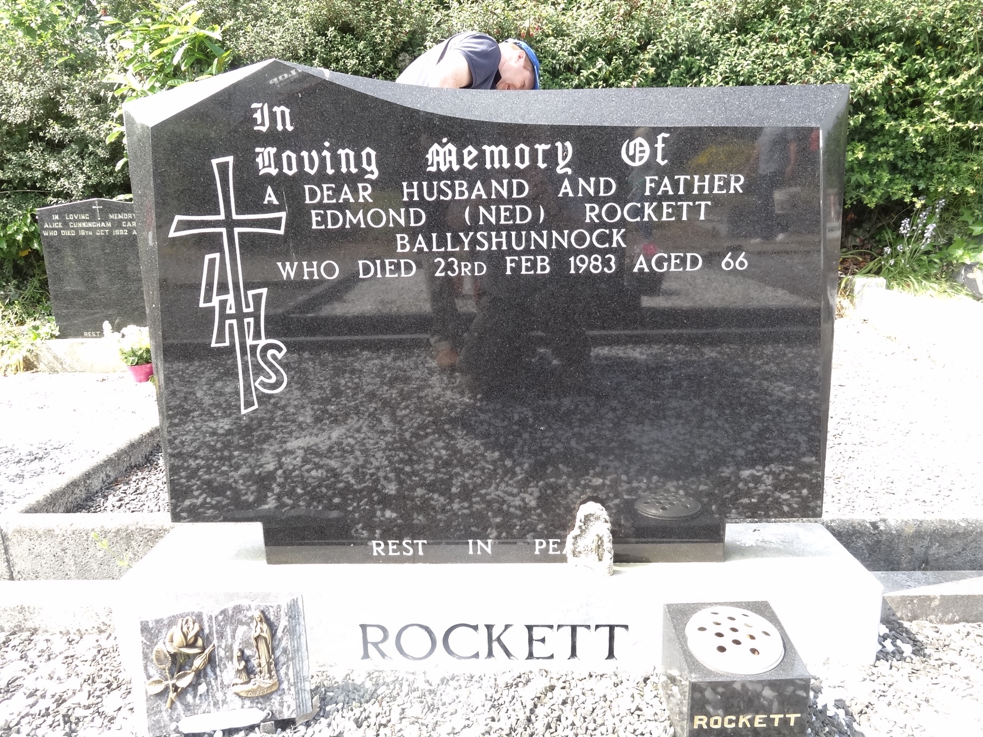 IHSInLoving Memory OfA DEAR HUSBAND AND FATHEREDMOND (NED) ROCKETTBALLYSHUNNOCKWHO DIED 23RD FEB 1983 AGED 66