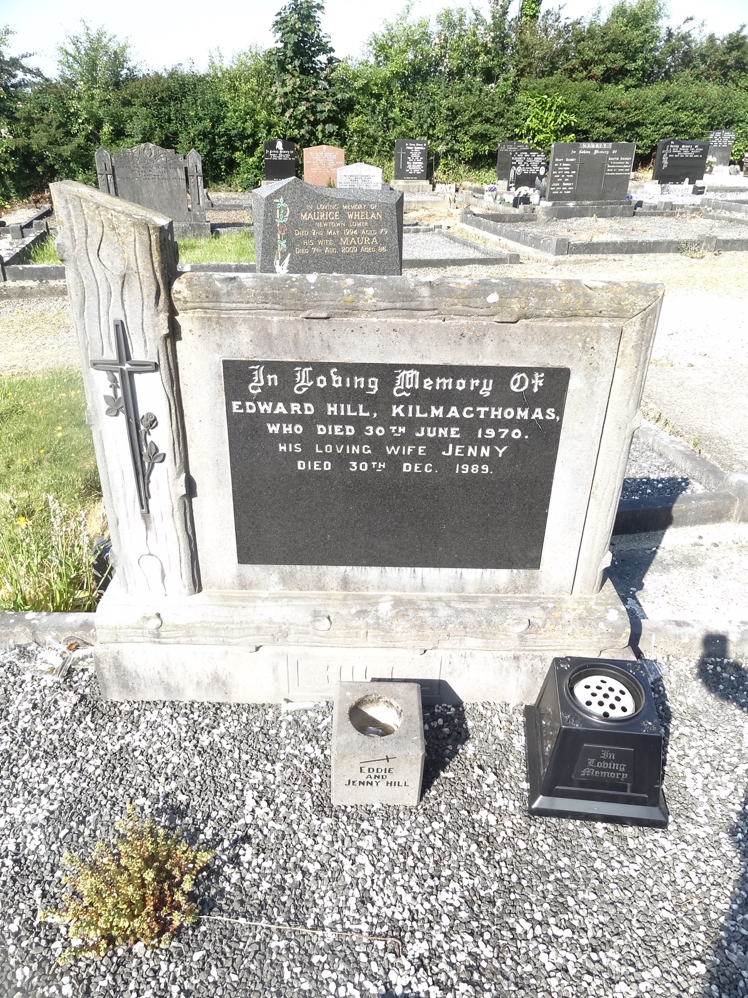 In Loving Memory OfEDWARD HILL, KILMACTHOMAS,WHO DIED 30TH JUNE 1970HIS LOVING WIFE JENNYDIED 30TH DEC. 1989.