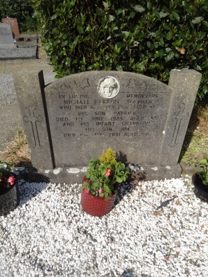 In loving memory ofMichael Barron Scrahanwho died 16th Feb 1967 aged 67His son Patrickdied 1st June 1985 aged 55His infant grandsonHis son Jimdied 4th Nov 2001 aged 52