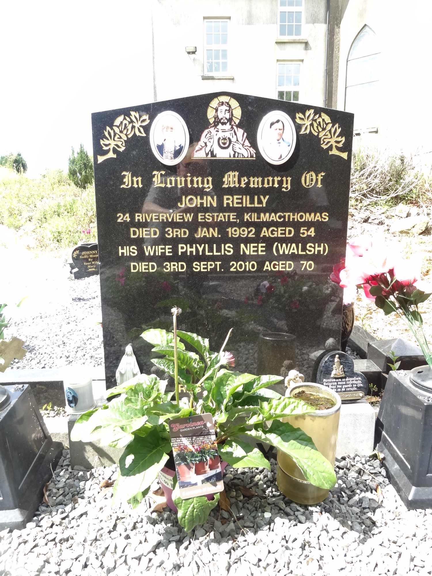 In loving memory ofJohn Reilly24 Riverview Estate, Kilmacthomasdied 3rd Jan. 1992 aged 54His wife Phyllis nee (Walsh)died 3rd Sept 2010 aged 70