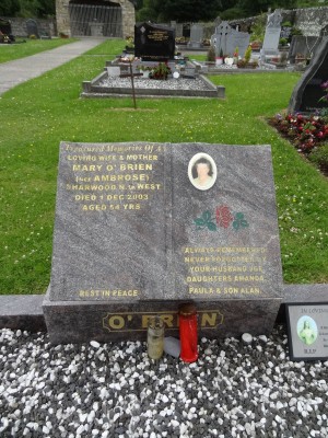 Treasured Memories Of ALoving Wife & MotherMARY O'BRIEN(NEE AMBROSE)Sharwood N. C. WestDied 1 Dec 2003Aged 54 Yrs