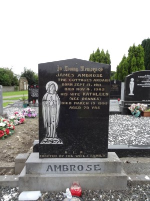 In Loving Memory OfJAMES AMBROSEThe Cottages ArdaghBorn Sept 17. 1911Died Nov 4. 1985His Wife KATHLEEN(NEE DOWNES)Died March 13 1995Aged 79 Yrs