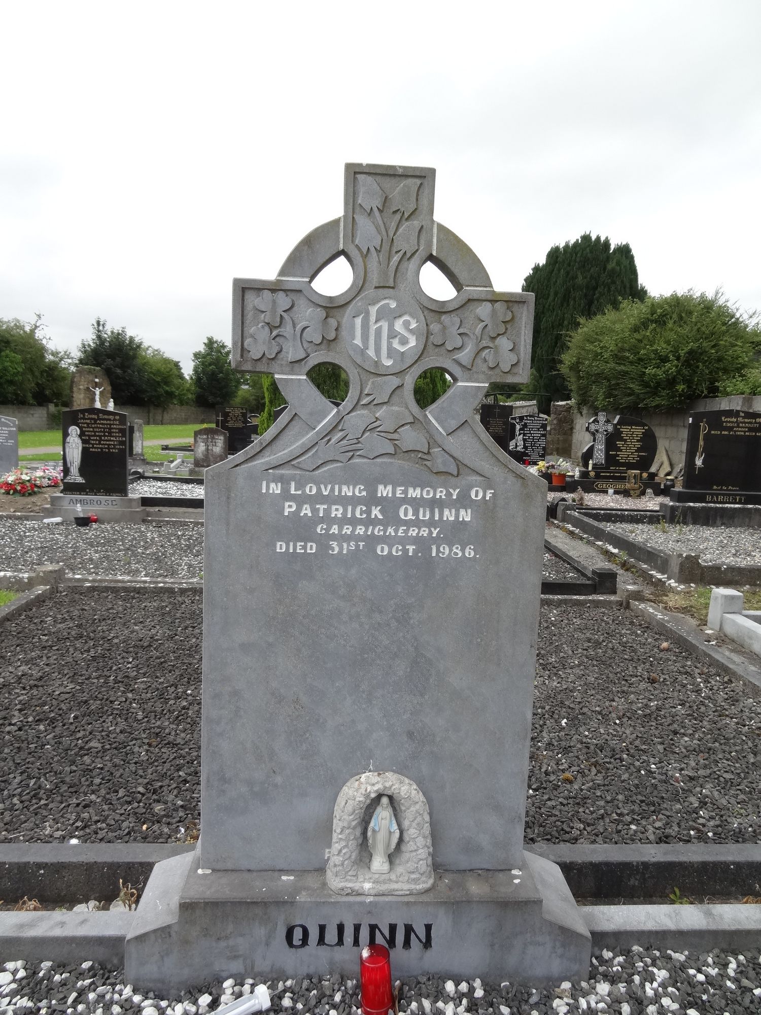In Loving Memory OfPATRICK QUINNCarrigkerryDied 31ST Oct. 1986His Wife MARYDied 29 Sept. 2014