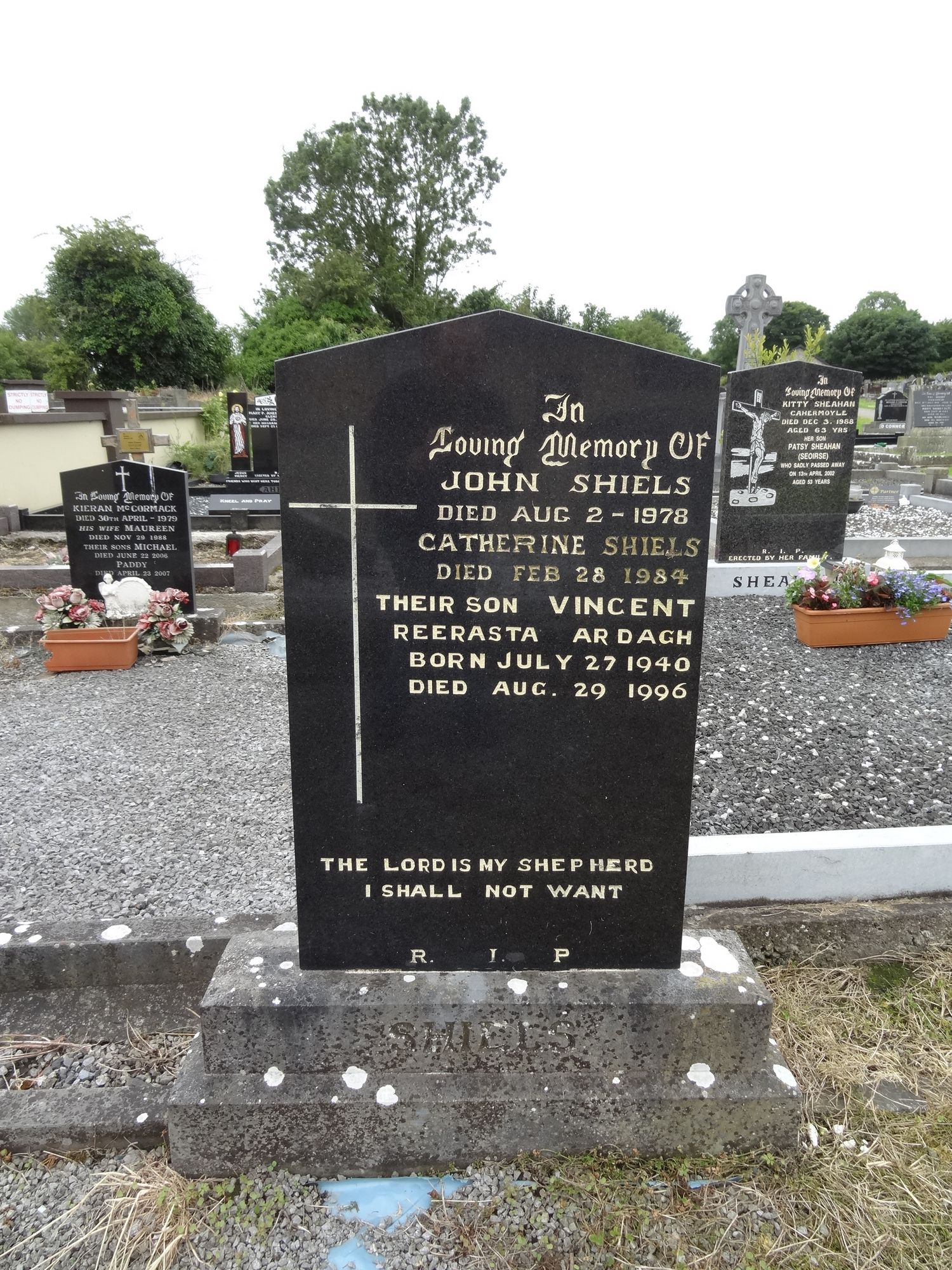 InLoving Memory OfJOHN SHIELSDied Aug 2 - 1978CATHERINE SHIELSDied Feb 28 1984Their Son VINCENTReerasta ArdaghBorn July 27 1940Died Aug 29 1996