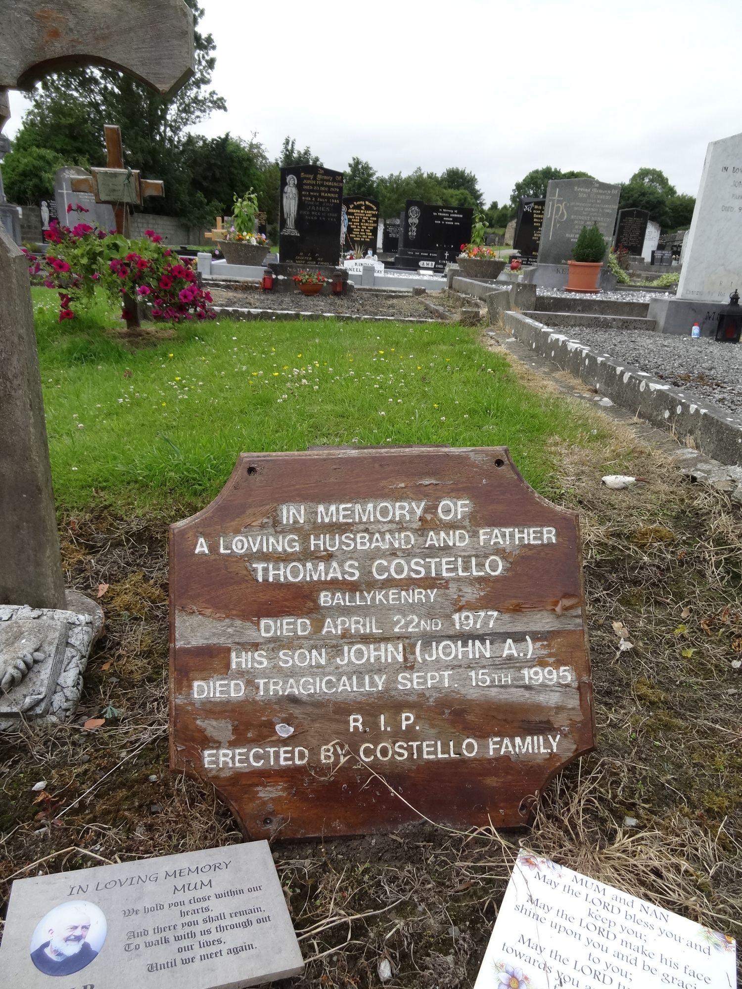 In Memory OfA Loving Husband And FatherTHOMAS COSTELLOBallykenryDied April 22ND 1977His Son JOHN (JOHN A.)Died Tragically Sept. 15TH 1995