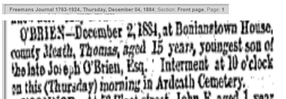 WIFE OF JAMES O' BRIEN  BONNIANSTOWN