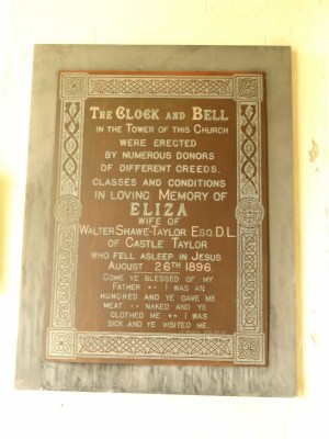 In loving memory of Eliza wife of Walter Shawe Taylor Esq DL of Castle Taylor