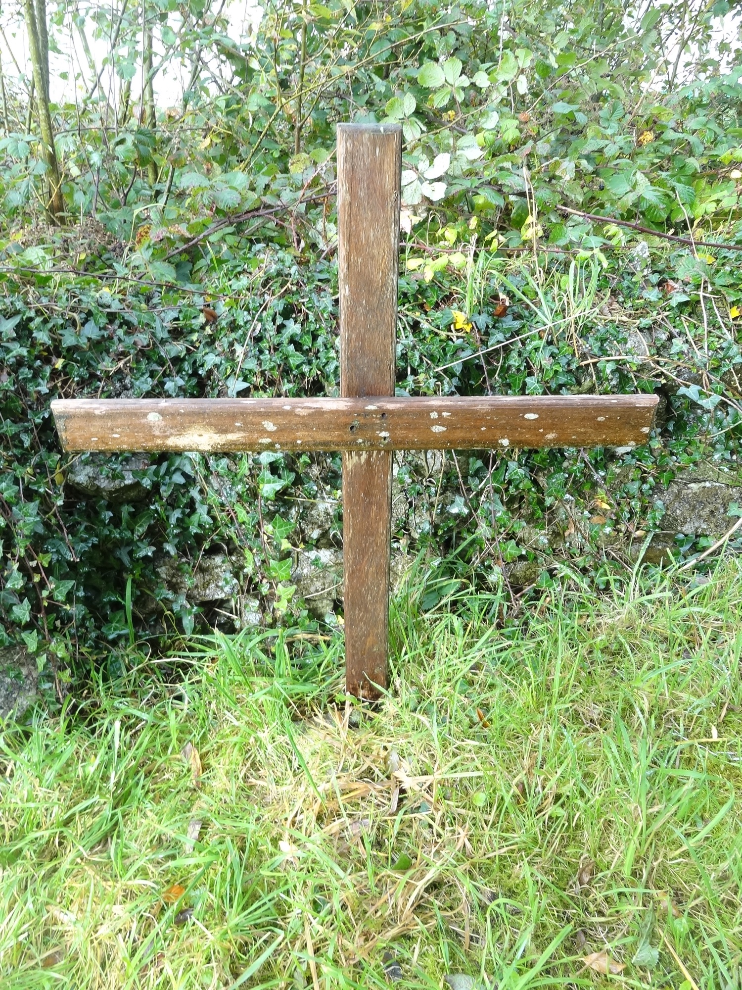 THE ORIGINAL WOODEN CROSS THAT MARKED THE BURIAL SITE HAS BEEN REPLACED BY A MODERN HEADSTONE.