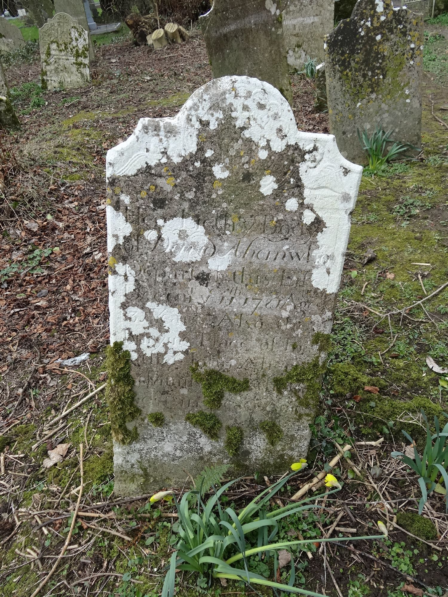 Here lieth ye body of David Ahern whodeparted this life December 11th 1781 aged 31 years. Also the burying place of hisfather John Ahern& family. May they rest in peace Amen