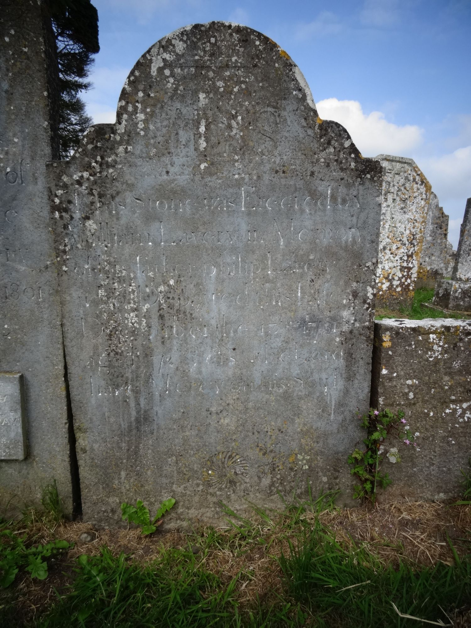 This stone was erected byWilliam Lavery in memory of his father Philip Laverywho departed this life December the 13th 1781aged 72 years the Lord have mercy on his soul