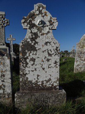 In loving memory of Andrew Trimble Ballinderry who died February 12th 1935 his wife Bridget died May 23rd 1936 their daughter Ellen died Feb 19th 1940. Erected by Patrick and Kathleen