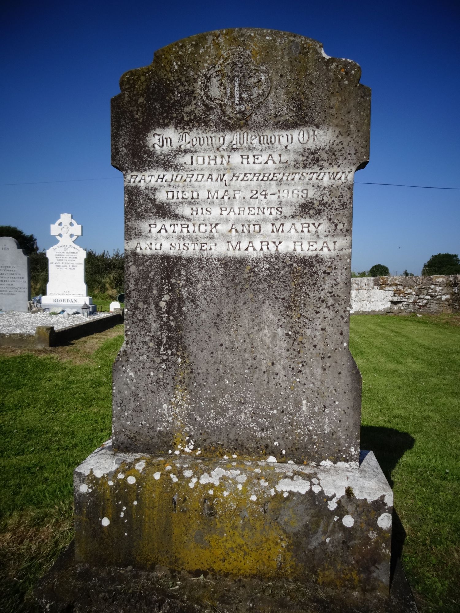 In loving memory ofJohn RealRathjordan Herbertstowndied Mar 24 1969hid parentsPatrick and Maryand sister Mary Real