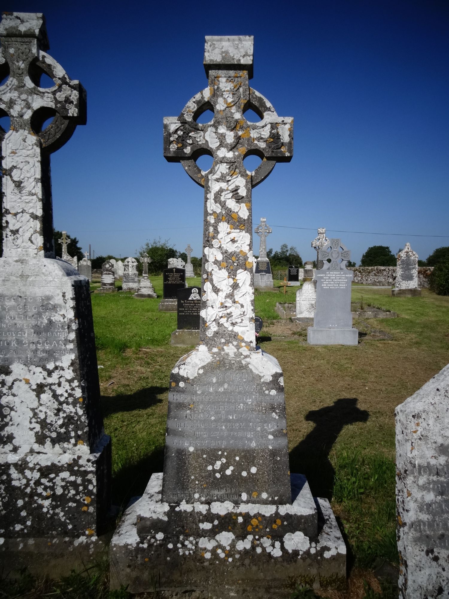 sacred to the memory of Mrs Johanna GilhoolyKildromindied 24th Nov 1938her sons Patrick Josephdied 23rd Feb 1950Andrew died 6th May 1925RIPerected by her daughter Mary Gilhooly