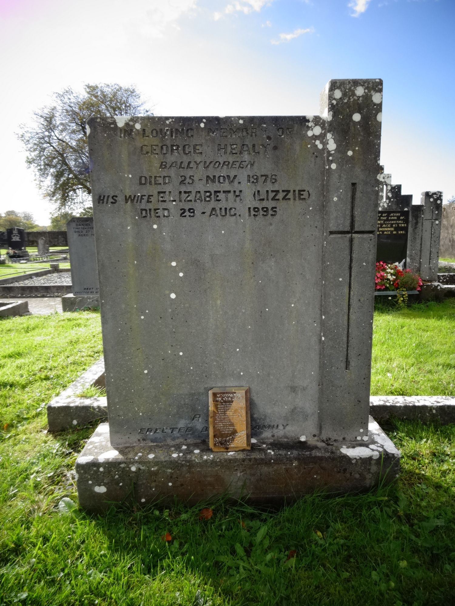 IN LOVING MEMORY OF GEROGE HEALY BALLYVOREEN DIED 25TH NOV 1976 HIS WIFE ELIZABETH (LIZZIE) DIED 29TH AUG 1995 ERECTED BY HIS FAMILY