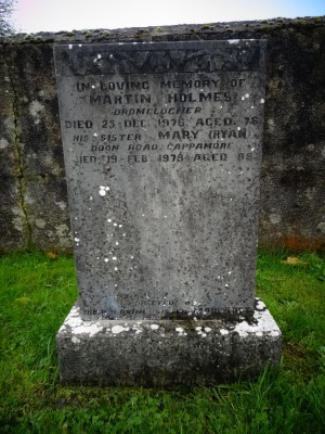 IN LOVING MEMORY OF MARTIN HOLMES DROMCLOGHER DIED 25TH DEC 1976 AGED 76 HIS SISTER MARY (RYAN) DOON RD CAPPAMORE DIED 19TH FEB 1979 AGED 88