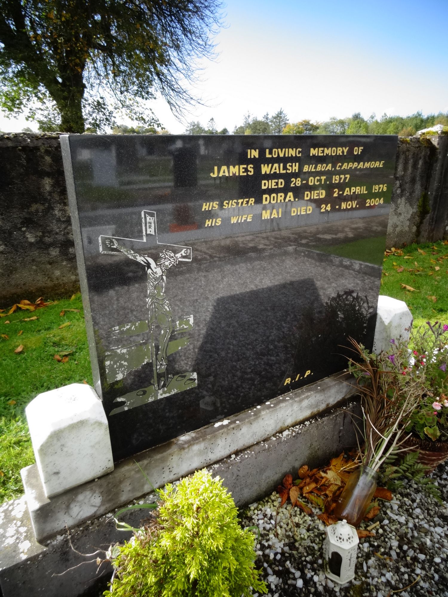 IN LOVING MEMORY OF JAMES WALSH BILBOA CAPPAMORE DIED 28TH OCT 1977 SISTER DORA DIED 2ND APRIL 1976 HIS WIFE MAI DIED 24 NOV 2004