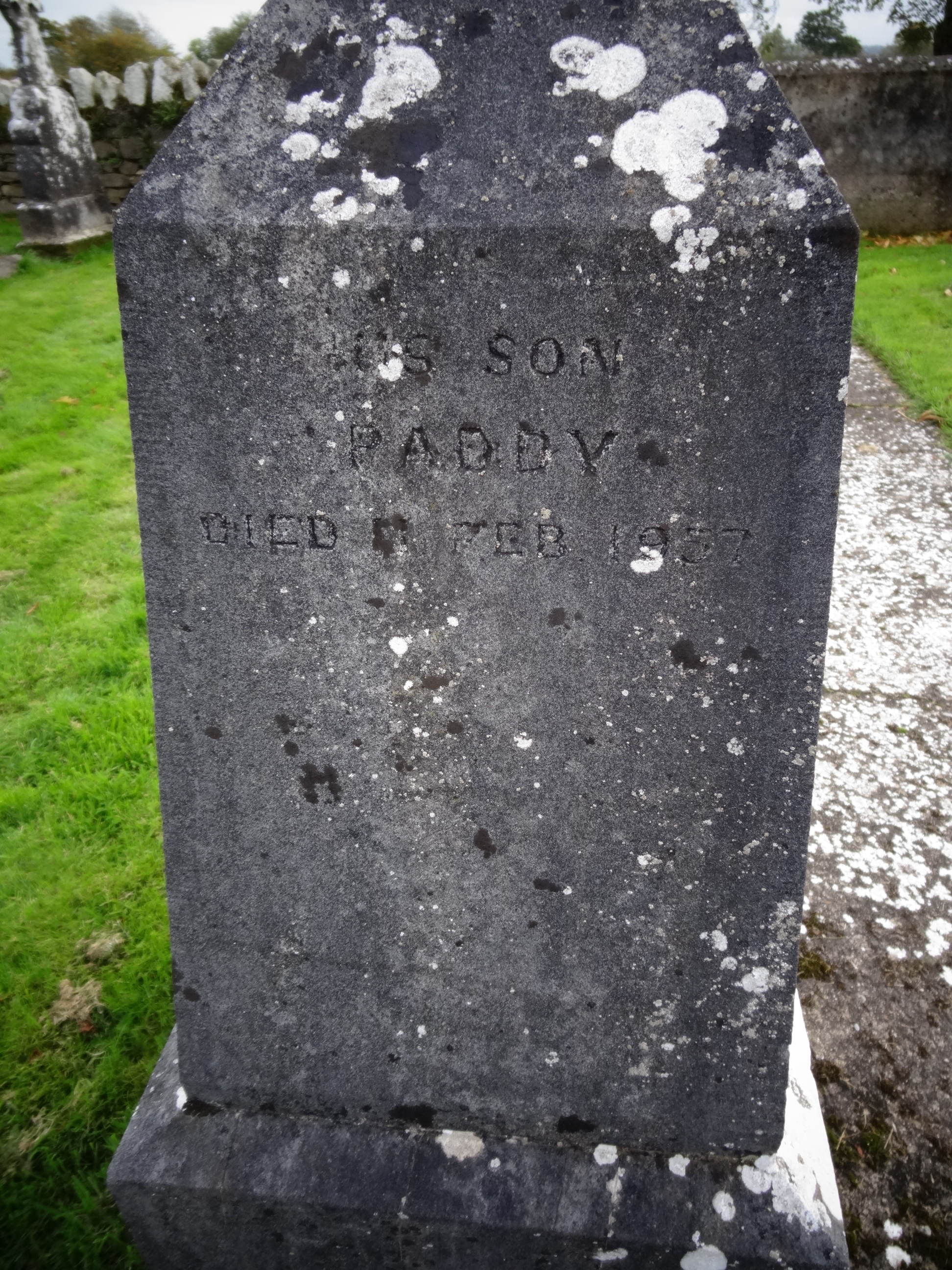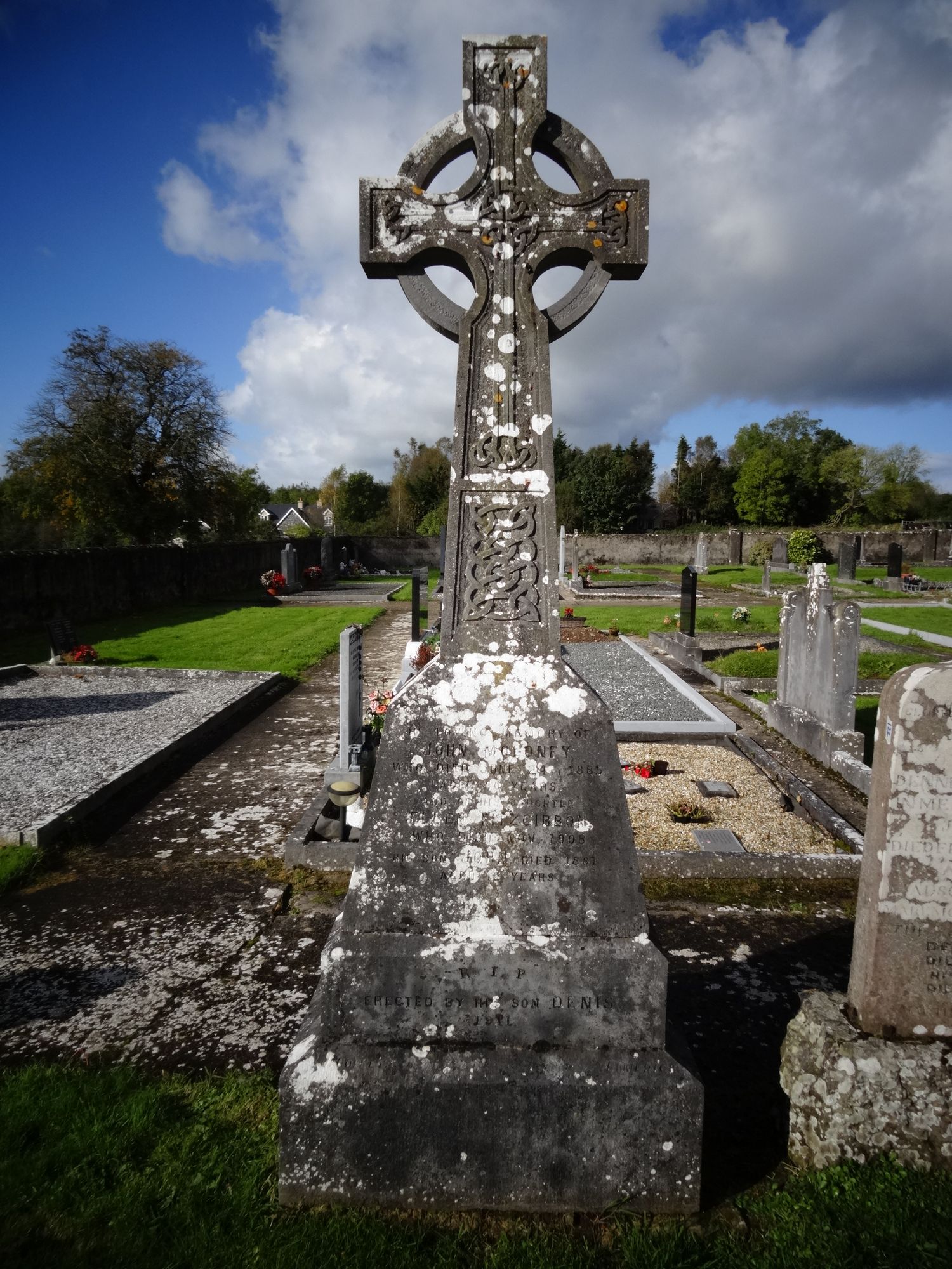 IN LOVING MEMORY OF JOHN MOLONEY WHO DIED JUNE 24TH 1885 AGED 80 YRS AND OF HIS DAUGHTER ELLEN FITZGIBBON WHO DIED NOV 1908 HIS SON JOHN DIED 1881 AGED 12 YRS