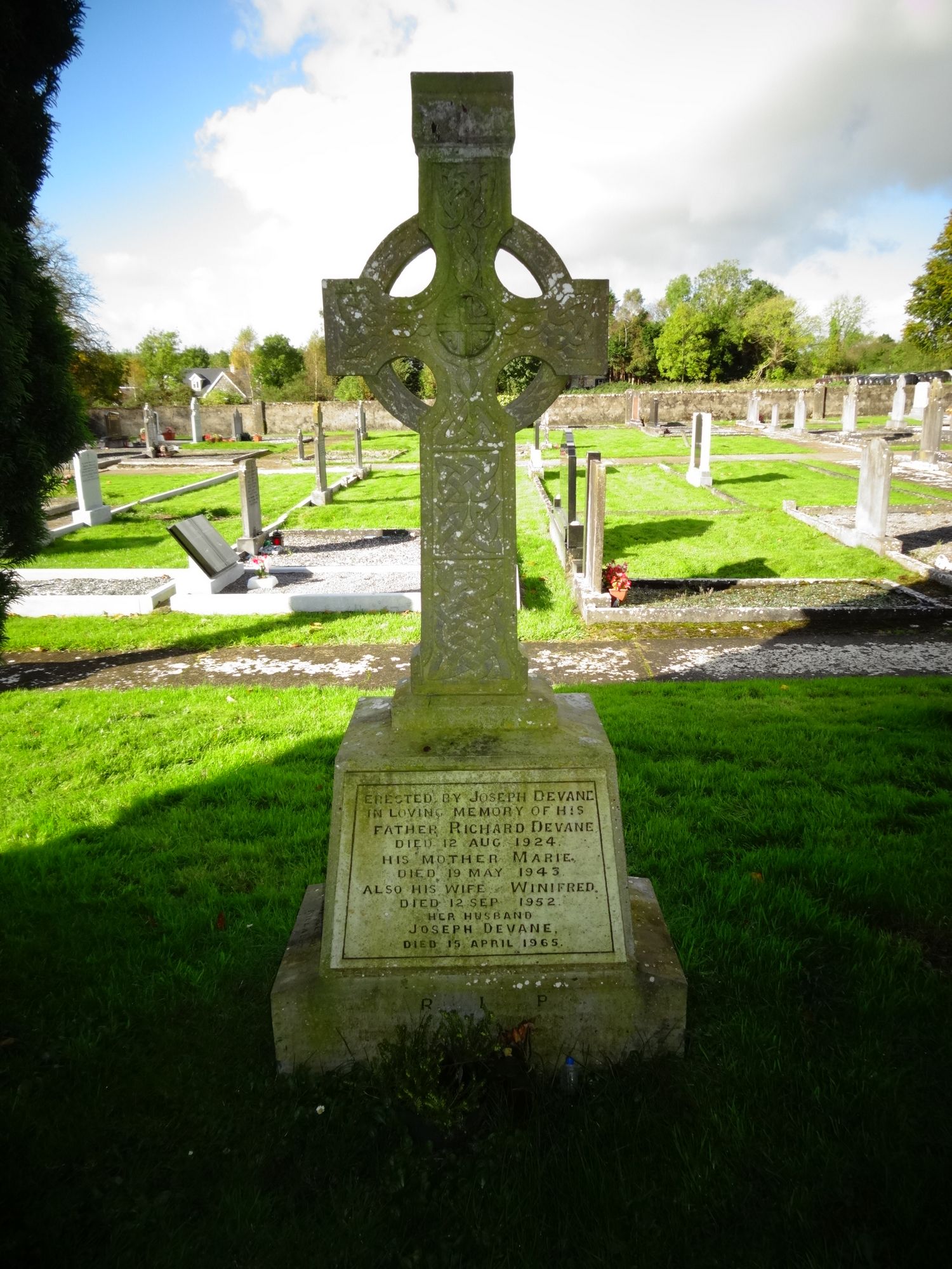 ERECTED BY JOSEPH DEVANE IN LOVING MEMORY OF HIS FATHER RICHARD DEVANE DIED 12TH AUG 1924 HIS MOTHER MARIE DIED 19TH MAY 1943 ALSO HIS WIFE WINIFRED DIED 12TH SEPT 1952 HER HUSBAND JOSEPH DEVANE DIED 15TH APRIL 1965