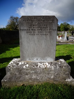 ERECTED BY THOMAS LOUIS WALSHE BILBOA IN MEMORY OF HIS BELOVED WIFE TERESA WALSHE (NEE CROWE) DIED 13TH DEC 1999 AGED 88 YRS