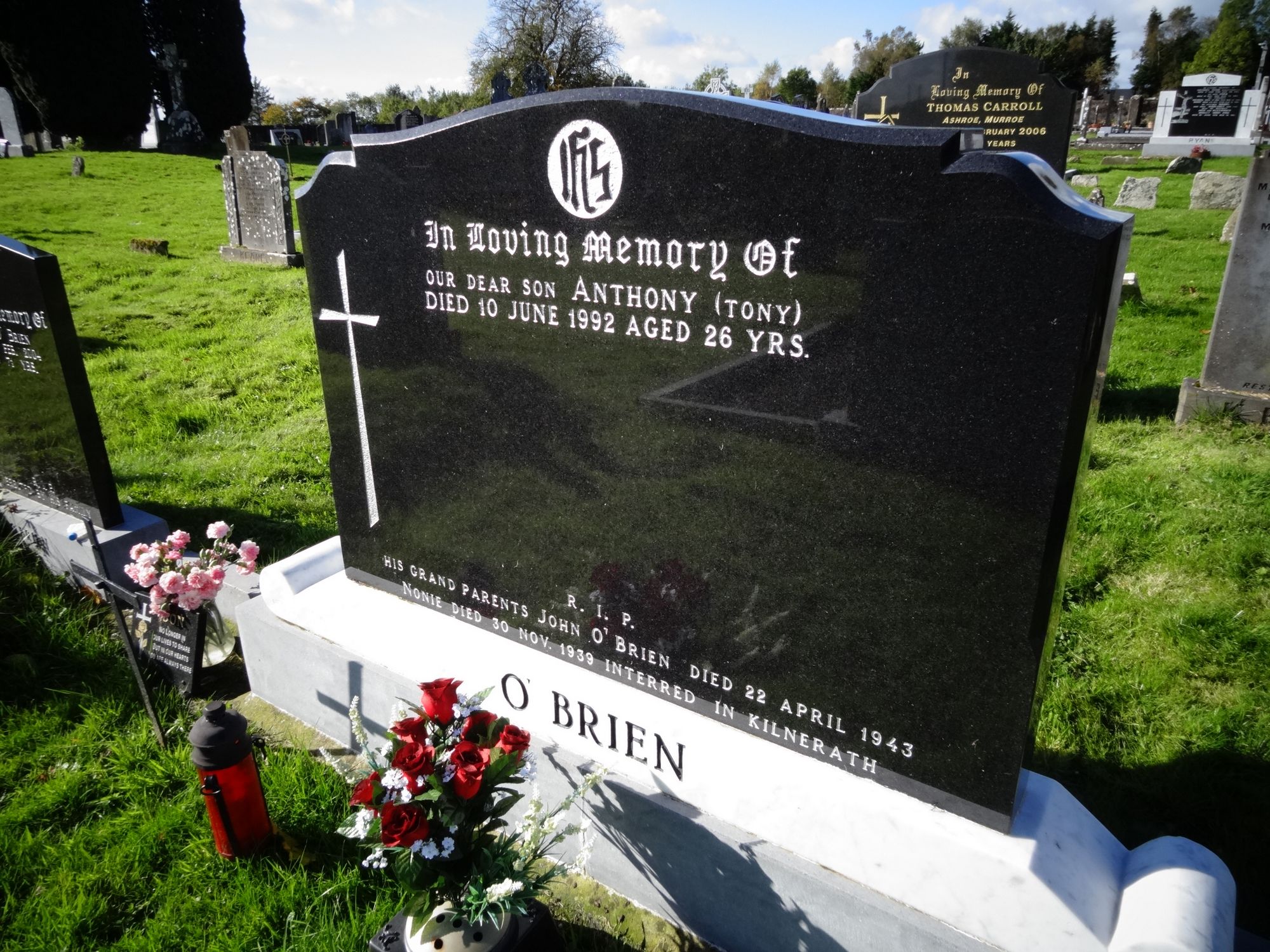 HIS GRANDPARENTS JOHN OBRIEN DIED 22 APRIL 1993 NONIE DIED 30TH NOV 1939 INTERRED IN KILNERATH