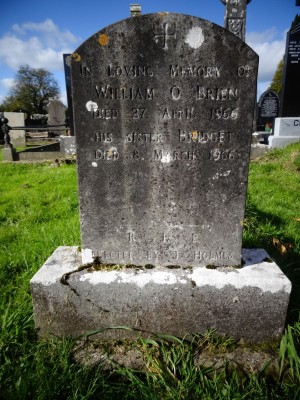IN LOVING MEMORY OF WILLIAM O BRIEN DIED 27TH APRIL 1966 HIS SISTER BRIDGET DIED 8TH MARCH 1966