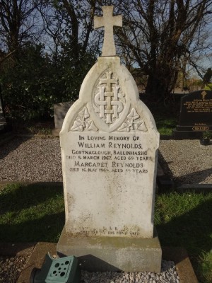 In Loving memory ofWilliam ReynoldsGortnaglough, Ballinhassigdied 5.March 1967. Aged 69 years.Margaret Reynoldsdied 16.May 1969. Aged 69 years