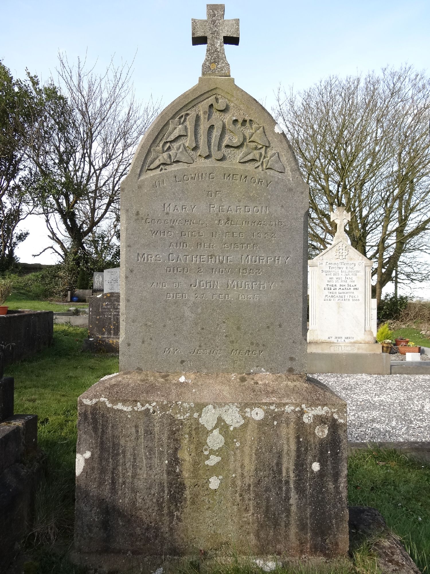 In Loving Memory OfMary ReardonGogginshill, Ballinhassigwho died 11. Feb. 1952and her sisterMrs.Catherine Murphydied 2. Nov. 1953and of John Murphydied 27. Feb. 1955