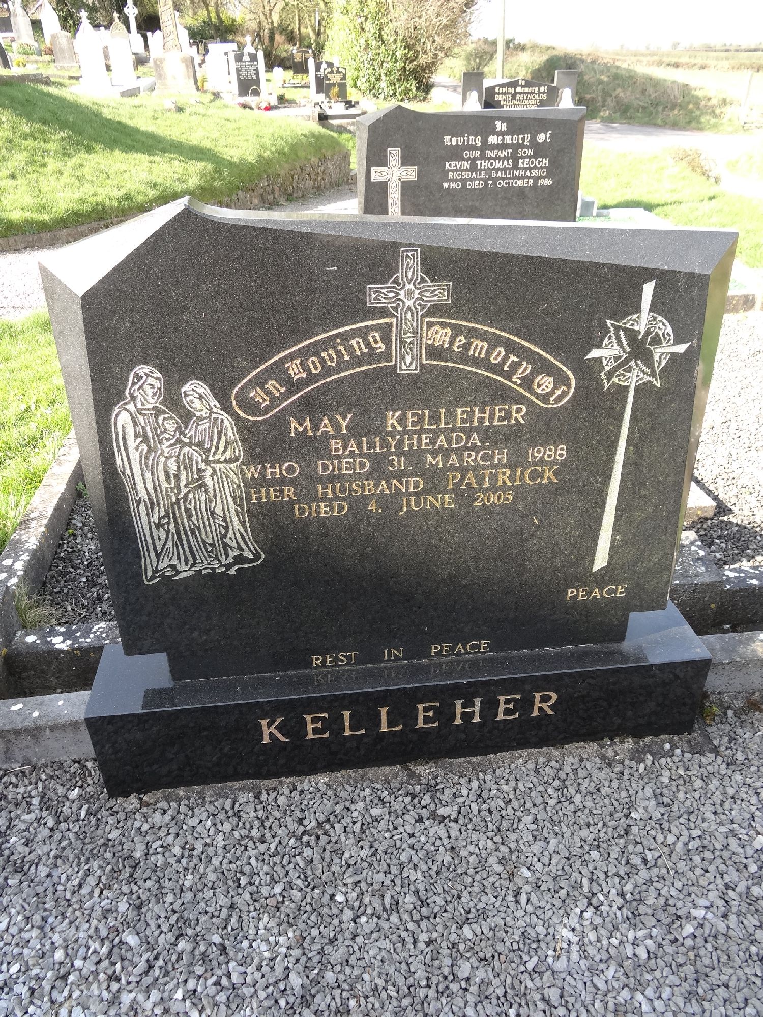 In Loving Memory OfMay KelleherBallyheadawho died 31. March 1988her husband Patrickdied 4. June 2005