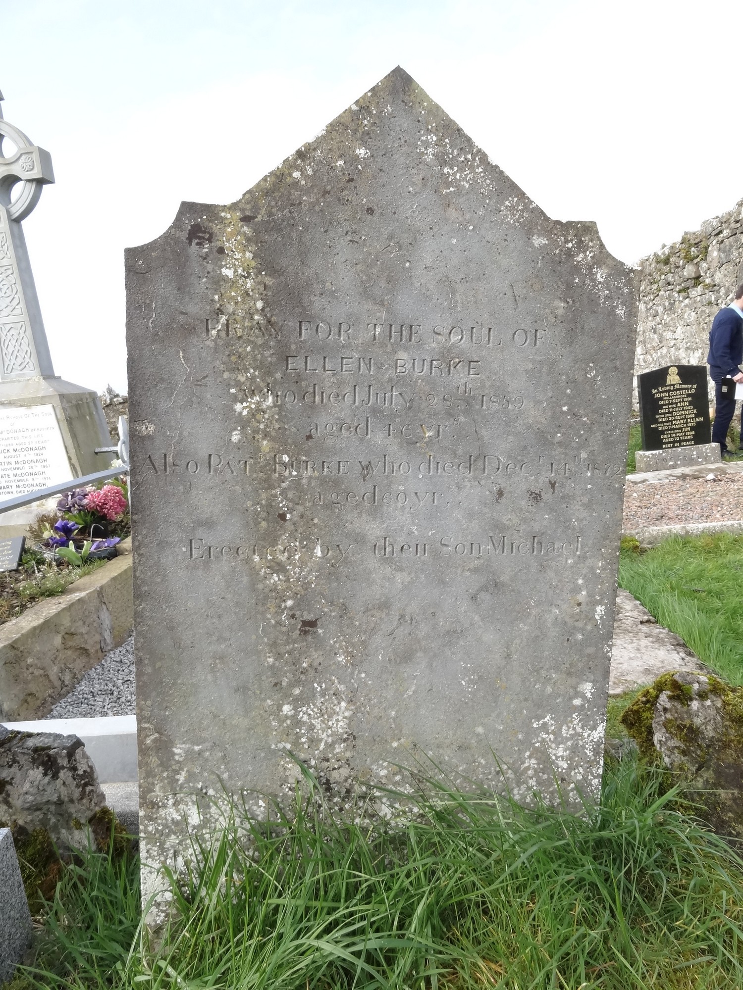 Pray for the soul of Ellen Burke who died July 28th 1859 aged 46 yearsAlso Patrick Burke who died Dec 14th 1872 aged 60 yearsErected by their son MichaelĀ