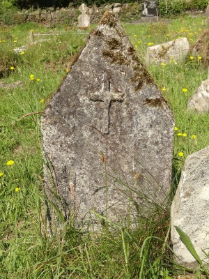 Cross inscribed concrete headstone