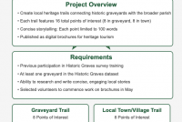 An example of the trails can be viewed here. This consists of an overarching destinations page on the Historic Graves webpage, a brochure for the trail in the village of Ardmore (link), and a corresponding brochure for the graveyard trail (link).