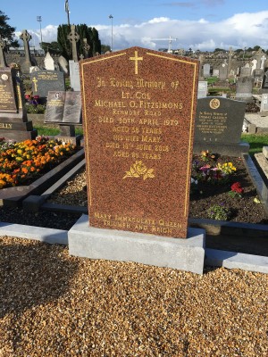 In loving memory of, Lt Col, Michael O Fitzsimons, Renmore Road, died 30 April 1979, aged 58 years, his wife Mary, died 18 June 2018, aged 85 years.