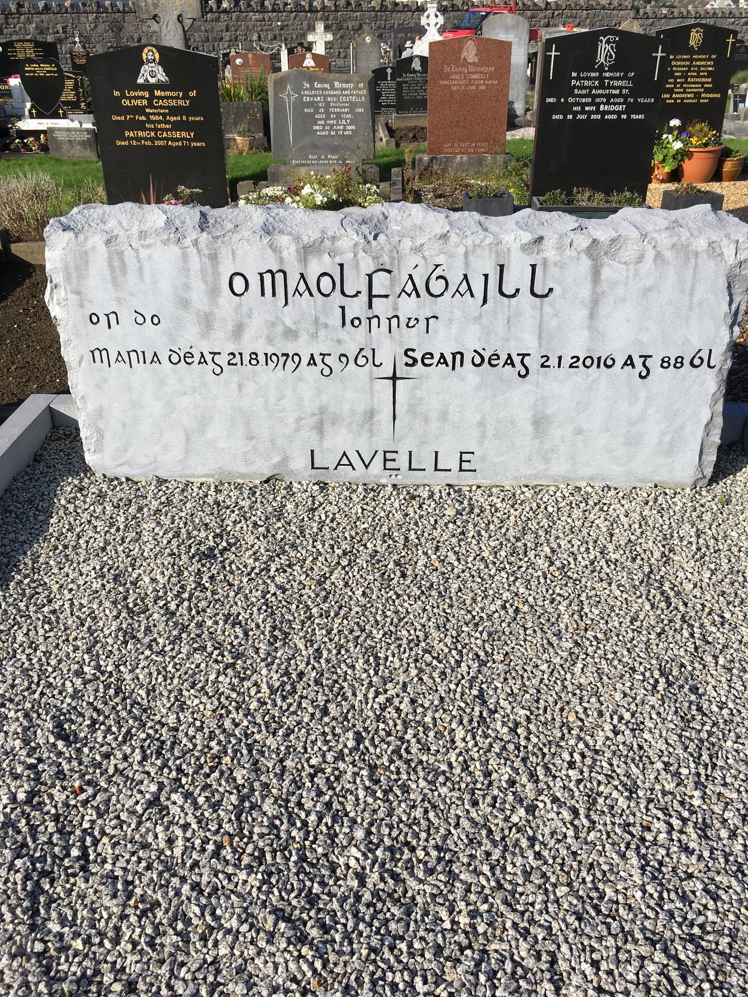 Maria d'éag 21.8.1979 ag 9 bl. Sean d'éag 2.1.2016 ag 88 bl.
