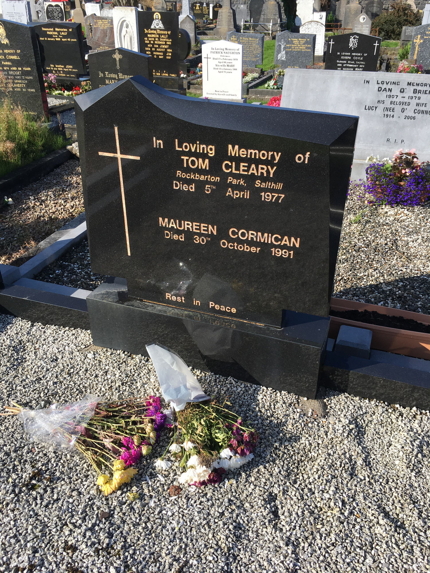 In loving memory of, Tom Cleary, Rockbarton Park Salthill, died 5 April 1977, Maureen Cormican, died 30 Oct 1991.