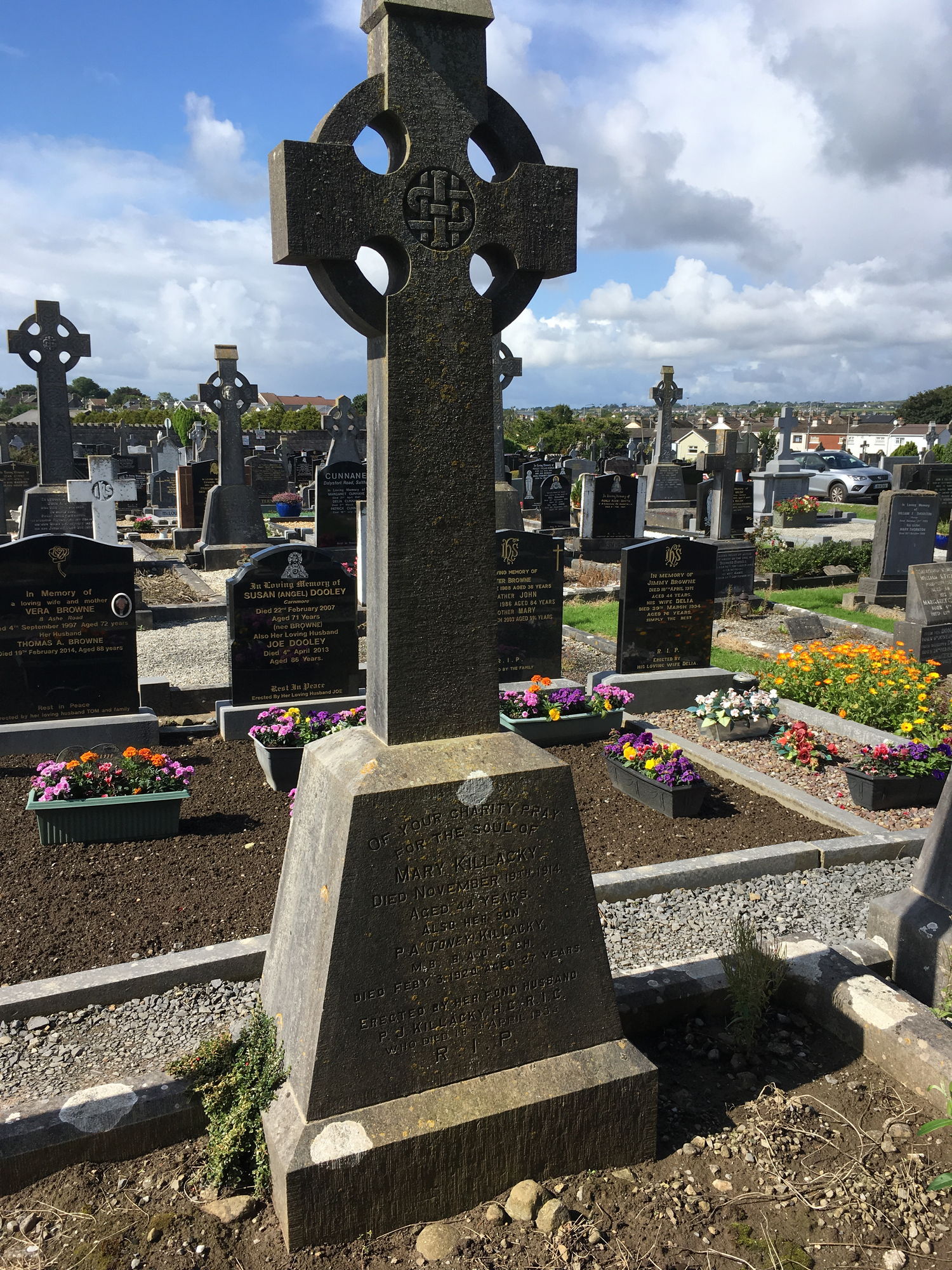 Of your charity pray for the soul of Mary Killacky, died Nov 19 1914, aged 44 years, also her son, P.A. Killacky, died Feb 3 1920 aged 27 years, erected by her fond husband, PJ Killacky, H.C. R.I.C., died 18 April 1935.