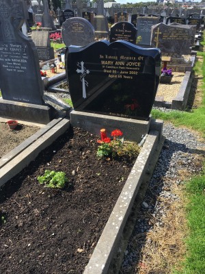 In loving memory of, Mary Ann Joyce, 51 Camillaun Park Newcastle, died 20 June 2002, aged 55 years.