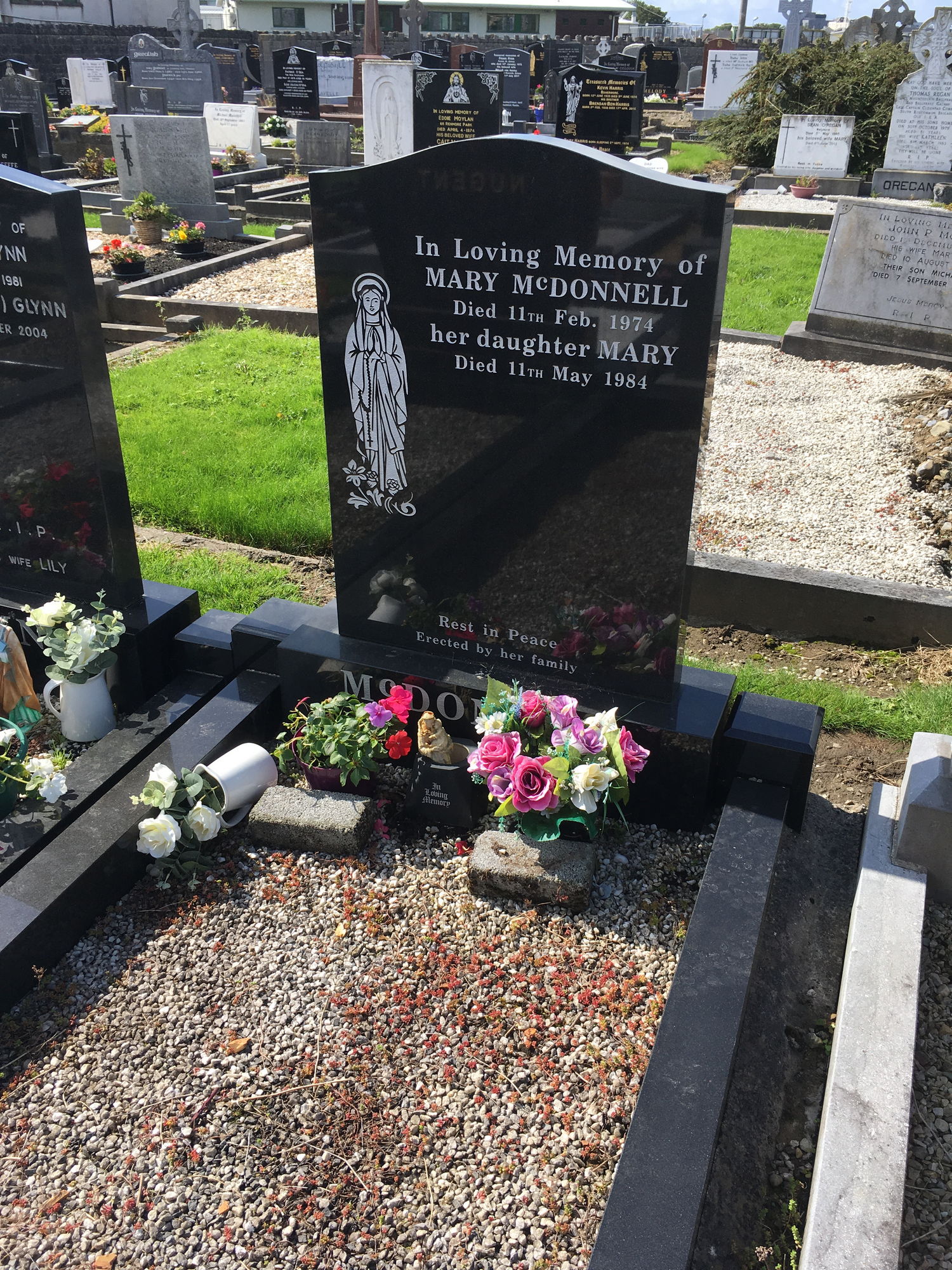 In loving memory of, Mary McDonnell, died 11 Feb 1974, her daughter Mary, died 11 May 1984.