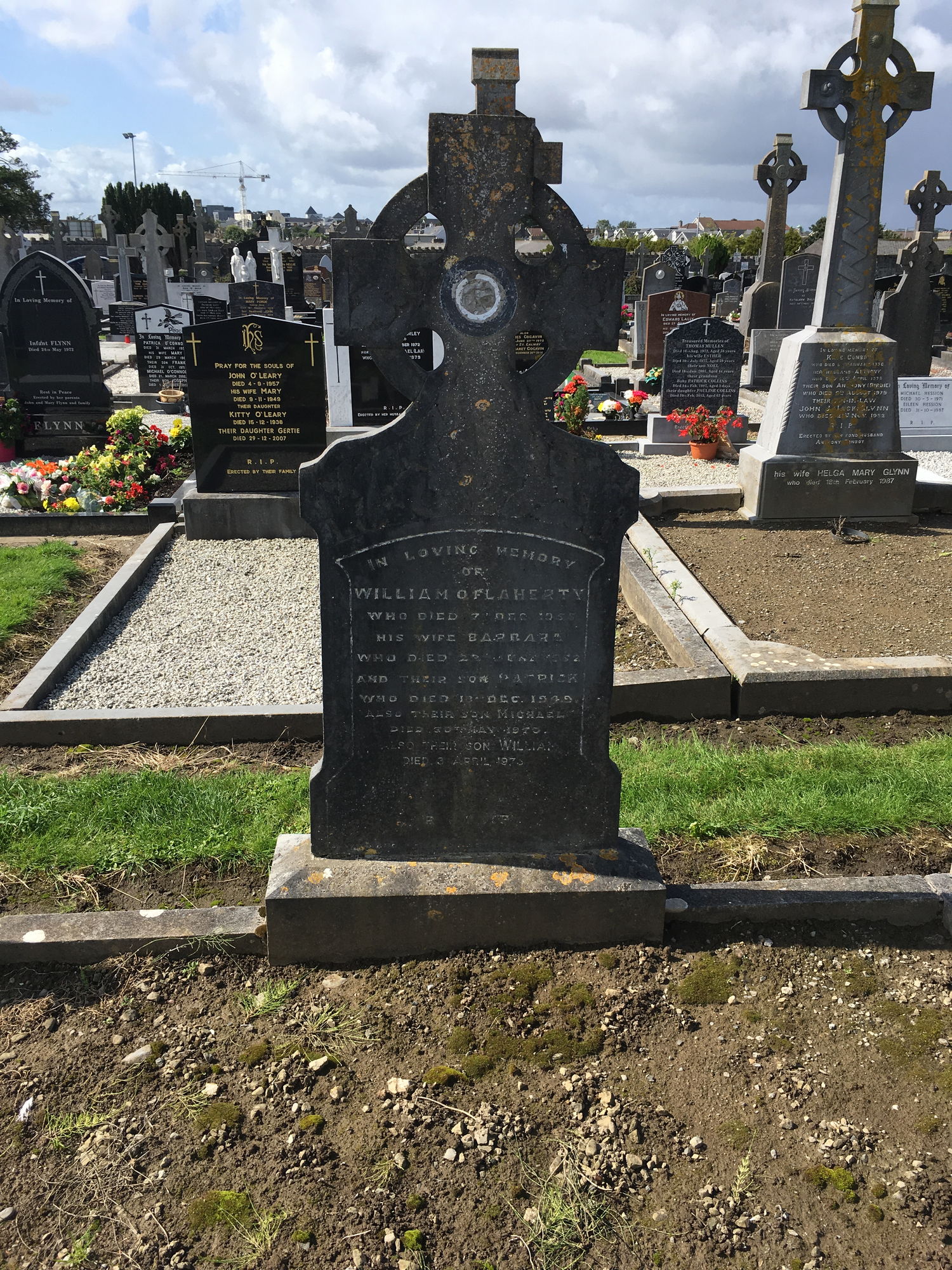 In loving memory of, William O'Flaherty, who died 7 Dec 1955, his wife Barbara, who died 24 June 1962, and their son Patrick, who died Dec 1949, also her son Michael, who died 30 May 1970, also their son William, died 3 April 1975.