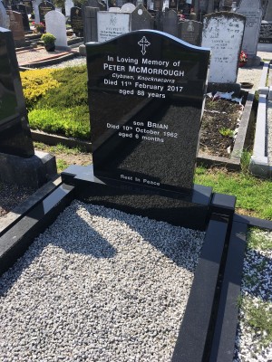 In loving memory of, Peter McMorrough, Clybawn Knocknacarra, died 11 Feb 2017, aged 88 years. Son Brian, died 10 Oct 1962, aged 6 months.