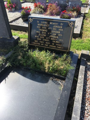 In loving memory of, Margaret Jordan, died 8 Dec 1958, Thomas Jordan, who died 8 Jan 1973, Ellen Jordan, who died 13 March 1973, Quay St Galway
